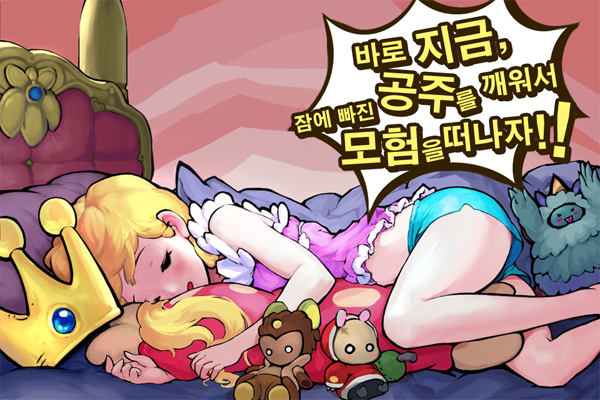 ‘Princess Pajama’, the main character of this game, helps player by healing, upgrading attack power and defense power.